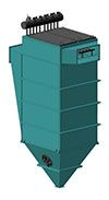 Циклофильтр - уникальный фильтр, сочетающий в себе преимущества циклона и рукавного фильтра. Работа фильтра основана на двухэтапной очистке: первый этап -циклон; второй - рукавный фильтр с импульсной регенерацией. Рукавные фильтры-циклоны используются при высоких запыленностях пылегазовоздушной смеси (свыше 50 г/м3), а так же при наличии крупных абразивных частиц в потоке. Рукавные фильтры-циклоны преимущественно применяются для очистки пылегазовоздушных потоков производительностью до 40 000 м3/час.