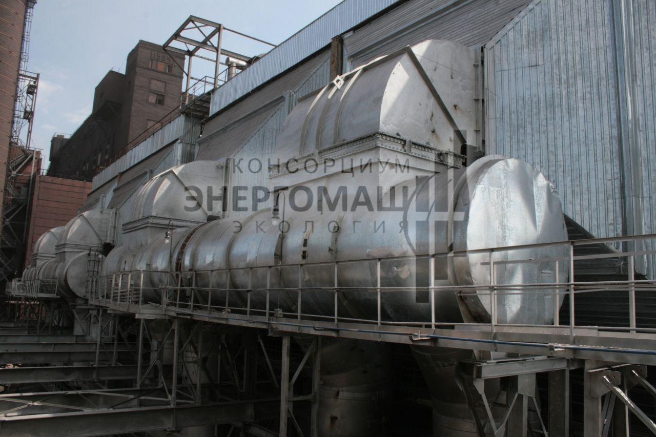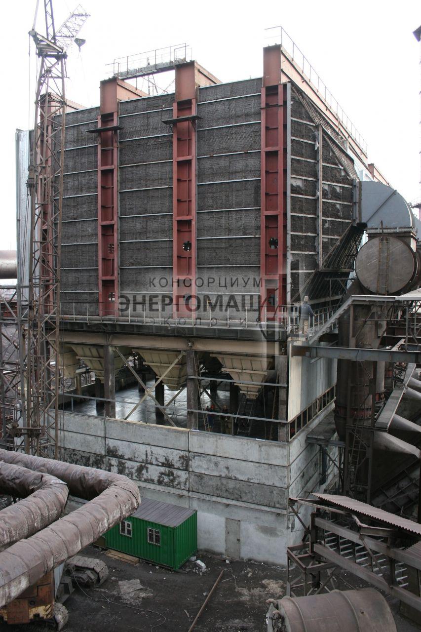 В 2007 г. наша организация завершила работы "под ключ" по строительству аспирационной установки хвостовых частей агломашин №1-6 МК "Запорожсталь" на базе двух электрофильтров ЭГУ2-302-52-12-6WS640-500-3. Разработка велась с учетом существующих фундаментов, постамента и инфраструктуры строительной площадки. Энергомашэкология разрабатывала и поставляла электрофильтры, систему сбора и транспортировки уловленной пыли.