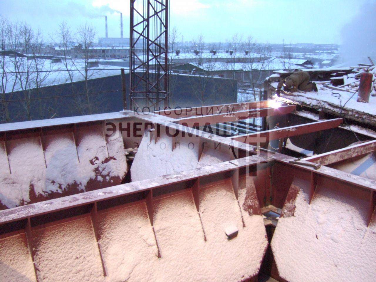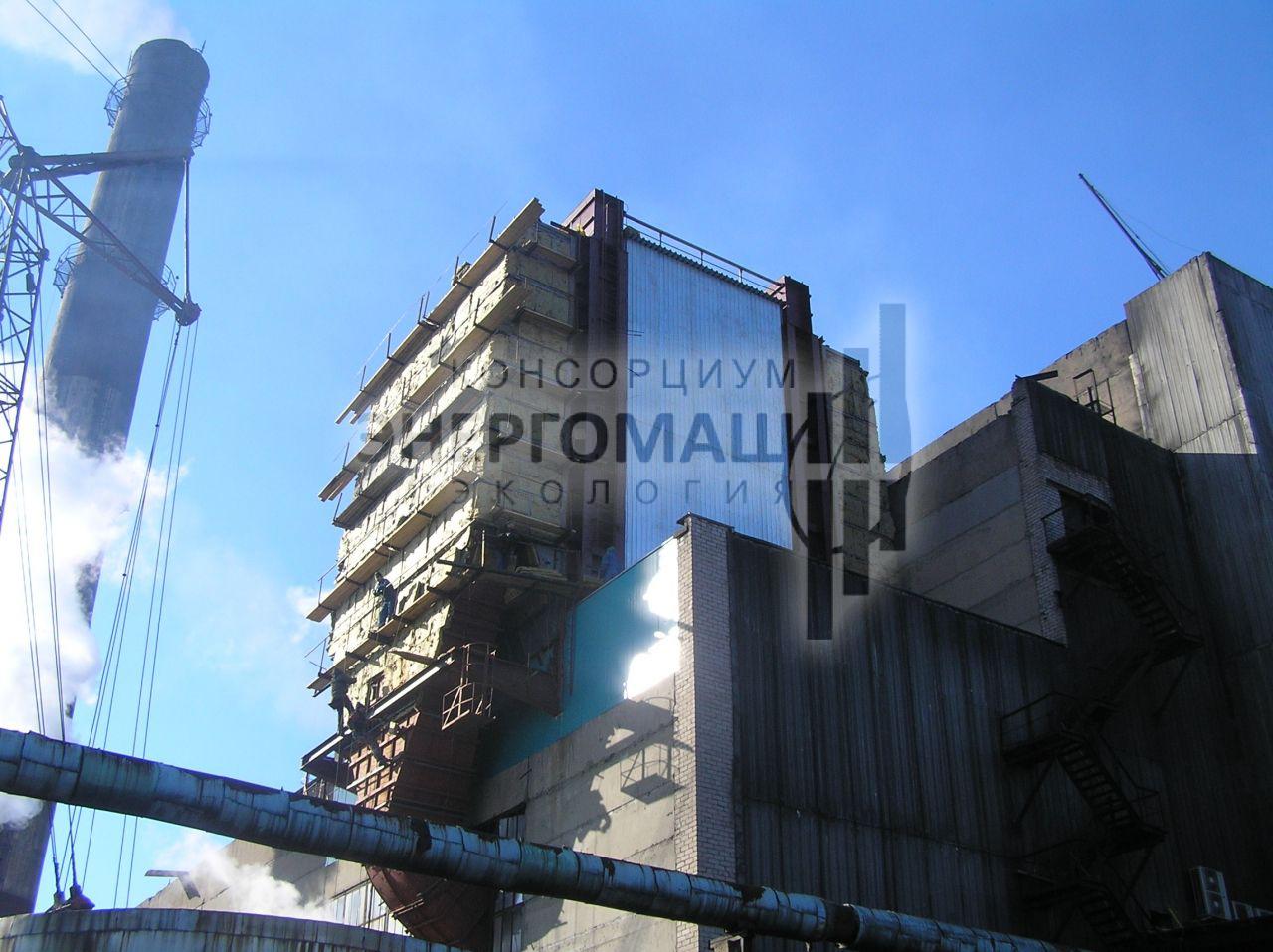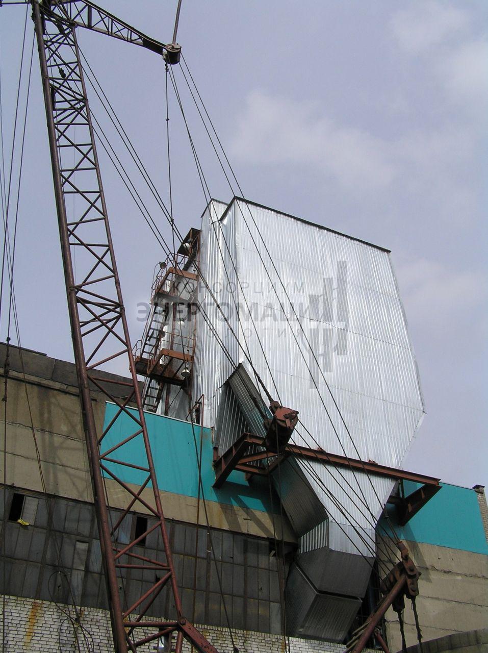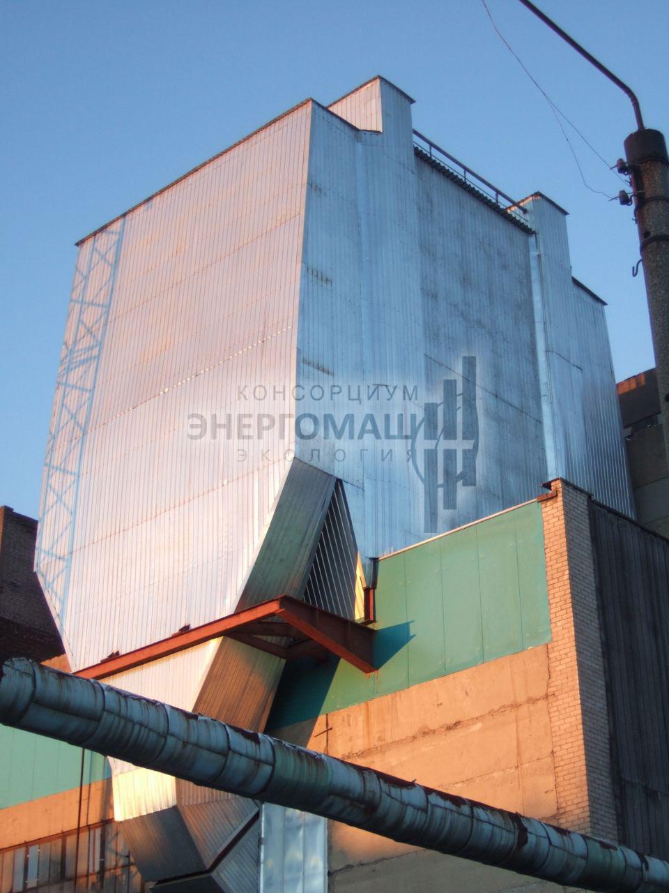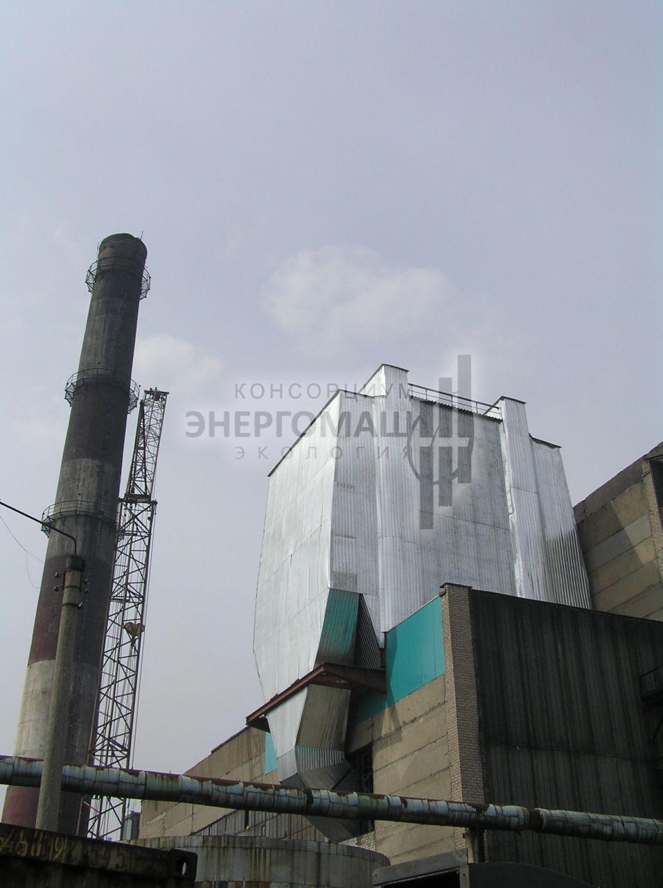 В 2007 наша организация выполнила работы "под ключ" по оснащению котла КМ-75-40 ст.№5 на ОАО "Соломбальский ЦБК" электрофильтром ЭГУ 105-21-12-9WS640-400-1. Основной задачей проекта стояло размещение электрофильтра в крайне стесненных условиях, поэтому была разработана специальная конструкция однопольного электрофильтра с установкой на крыше котельной.